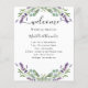 White elegant background, decorated with lavender florals, flowers and eucalyptus greenery. Personalise and add your names and your wedding day timeline.