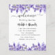 White elegant background, decorated with lavender florals, flowers. Personalise and add your names and your wedding day timeline.