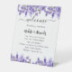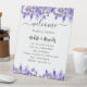 White elegant background, decorated with lavender florals, flowers.  Personalise and add your names and your wedding day timeline.
