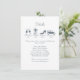 Wedding timeline with wedding details coordinating dusty blue hydrangea wedding invitation. A delightful way to add your wedding information such as accommodations, wedding website, and more. With simple elegant calligraphy. This enclosure Details card included a customisable timeline with cocktail glasses, silverware for dinner, a dancing shoe, and an old-fashioned car for Goodnight.