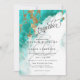 WEDDING INVITATION | Modern Turquoise Watercolor Geode by the BarefootBride™ - Modern Wedding hand painted beautiful watercolor illustration in shades of deep turquoise blue green and white with sparkling gold veining highlights has the appearance of a turquoise geode - A combination of script calligraphy combined with a minimalist, contemporary style text layout makes it a trending style wedding suite. This is part of a wedding stationery collection with matching wedding accessories.