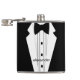 Perfect groomsman or groom wedding gift. This flask is a black and white formal tuxedo with bow tie. Personalised with the grooms name! Very cool.