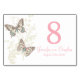 Beautiful graphic art two butterflies painted lady with a swallowtail and floral swirl wedding table number card in pink, cream, aqua teal and brown. A great idea to help guests find their seats at your wedding. Personalise with your names and wedding date. Original design and butterfly ink sketches by Sarah Trett.