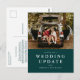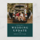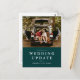 Need to cancel or postpone your wedding due to an unfortunate disaster? Pandemic? Hurricane? Death in the family? Send a notice to friends and family with this simple and tasteful postcard. The back includes a large block of custom text with suggested wording. There is also room for you to sign it. The front features a rich jade green background with white text along with a single square photo. The colours can be editing by clicking customise. Perfect for covid brides and coronavirus couples.