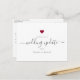 Perfect for any wedding update, this minimal script design is both elegant and timeless. Whether the reason to postpone your wedding is a natural disaster, death in the family, or a pandemic - this makes it easy to send a quick note about a change of date, postponement, location change, or any other news. On the back, you will find a custom text box for your personalised update as well as space to personally sign the cards. This is the black and white version with a simple burgundy red heart on the front, combining a hand lettered calligraphy look with modern typography.