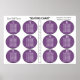 Romantic violet wedding theme. 12 table chart to seat 10 or less guests at each table in alphabetical order. White solid background Wedding Seating Chart with purple table circles for the Reception or other special occasion. Personalize with bride and groom's first names and name of reception facility in dark grey text. Type in guests names shown in black text in place of sample text for each row of tables. NOTE: Click Personalize and on left-hand side template layer fields to use command arrow keys to move numbers or text within circles around, if needed to center within each circle. Deep violet color is the undertone to matching Violet Watercolor Wedding Invitations via my store. Original Design © TamiraZDesigns.