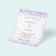 A white background. Decorated with violet and lavender coloured faux glitter. Personalise and add your names and details.
