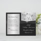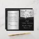 This black and silver floral 25th wedding anniversary vow renewal program has a black PRINTED ribbon and a PRINTED diamond jewels brooch on it. The text is customisable. If you need assistance getting your info to fit, please email niteowlstudio@gmail.com. ****PLEASE NOTE that the higher grade paper is a card stock and does not fold well.