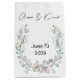 Pretty watercolor floral wreath on white with names and wedding date.