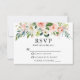 Modern Elegant Watercolor Pink Blush White Floral Wedding RSVP Card includes pink roses, white flowers and botanical greenery.