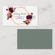 An elegant wedding website card, bohemian boho style. On front a faux gold geometric frame, a dark burgundy background with watercolored roses, flowers in burgundy with feathers. Whtie background and black coloured letters. Templates for your wedding website.