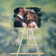 This wedding welcome sign exudes a modern and elegant design with a romantic touch. Created on clear acrylic, it radiates a sleek and contemporary charm. The top half features a captivating photograph of the couple, adding a personal and intimate essence to the design. The text on the sign is inscribed in a blend of graceful cursive and serif fonts, creating a sophisticated and stylish allure. The white lettering contrasts beautifully against the transparent backdrop, harmonising with other white wedding elements such as flowing curtains, the bride's veil, and pristine columns. This enchanting and visually appealing decor combines modern materials with a deeply personal and heartfelt touch, making it a perfect emblem of love and unity for any wedding celebration.