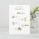 Welcome your guests with this gorgeous card with elegant timeline on the front and welcoming message on the back. White and gold design with exquisite golden watercolor timeline icons as well as delicate modern hand written calligraphy details in faux gold foil. Ability to "grab and move" timeline icon images to different order to suit your event by selecting "Edit using Design Tool".