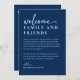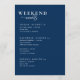 Welcome your guests in style with this navy wedding weekend timeline card. This wedding welcome bag note lets you to easily create a personalised wedding itinerary for your special weekend, ensuring your guests have all the information they need. The minimal design complements any modern wedding style, making it the perfect addition to your wedding welcome bag when your guests check into their rooms!