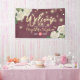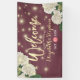 Wedding Welcome Banner Templates - Elegant White lovely Watercolor Hydrangea Flowers and String Lights on Burgundy Red Background.