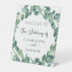 White background. Decorated with watercolored eucalyptus greenery. With the text: Welcome to The Wedding of. Personalise and add your names.