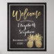 Wedding Welcome Poster Black Gold Pineapple Couple