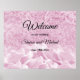 A lovely soft pink faux sparkle dot background with delicate pink roses accent this wedding sign to direct your guests to your special reception. This poster can be sized as desired and will make it easier for your guests to find their way to the room or hall.
