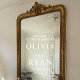 Make your wedding day extra special with this personalised vinyl decal. An elegant and meaningful way to welcome guests to your celebration of love. This easy to apply decal is designed with a blend of classic and script fonts to beautifully showcase your names and wedding date. Perfect for applying onto mirrors, acrylic sheets, wood, and more.