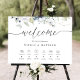 Welcome your guests with this elegant wedding welcome plus timeline sign! Design with beautiful watercolor floral with greenery and flowers in white and blue hues. Modern hand-written calligraphy details and delicate timeline icons personalised with your own wedding event timing. Available in a variety of sizes. IMPORTANT NOTE: This sign is in premium poster paper style, easy to frame or glue/staple to inexpensive MDF or foam board for display. This same sign design is also available on foam board. If needed, you can select "Edit Using Design Tool" located at the end of the template text boxes, and "grab and move" the timeline sections to a different time order. Part of our "Elegant Bliss Collection" with a variety of coordinating products available. Visit the entire collection at: https://www.zazzle.com/collections/elegant_bliss_collection-119067295475874152 Dimensions of sign-in demo photo with stand: 24" x 18"