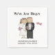 Paper disposable napkins perfect for the wedding reception or rehearsal dinner, features a bride and groom with text that reads We've Just Begun and has an area you can add the couple's names and wedding date!