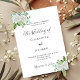 A classic, modern white background. Decorated with white roses, flowers and greenery. Personalise and add your names and the details.