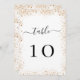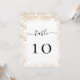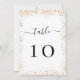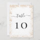 A stylish white backgrond decorated with faux gold glitter dust. Personalise and your table numbers. Black letters.