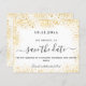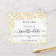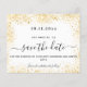 A modern and elegant Save the Date for a wedding. A white background decorated with faux gold glitter. sparkles. Personalise and add a date and names. The text: Save the Date is written with a large trendy hand lettered style script.