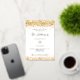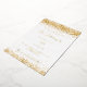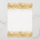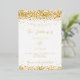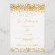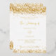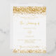 A stylish white background. Decorated with faux gold glitter, sparkles. Personalise and add your names and the details. The text is written with real gold foil.