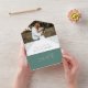 Muted sage green hand-drawn growing leaf botanical art add your own couples photo inside wedding all-in-one invitation. Personalise this detachable reply wedding invitation with your own wedding ceremony details, photo, monogram initials, and meal options on your detachable reply cards. Simple green leaf design and monogram initials circle of leaves. Other colours and matching wedding items available. © Original leaf drawing and design by Sarah Trett for www.mylittleedenweddings.com on Zazzle.