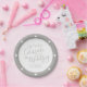 Simple graphic warm grey script text and white hearts wedding paper plates. Typographical text reads Eat, drink & celebrate the wedding of then add your own names underneath. A great personalised addition to your wedding buffet or party tables. Other matching items and colours available in this design. Original design by www.mylittleedenweddings.com