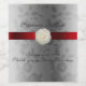 Wedding Wine Label with Red Ribbon on Silver and a beautiful white Gardenia. Personalise for any event or occasion.