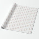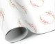 Wrapping paper is shown with a romantic pink flowers and heart shape print on a white background.