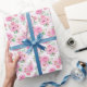Wrapping paper shown with a lovely pink rose bouquet print.