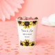 Wedding Paper Cups in Yellow and White with Yellow Watercolor Sunflowers and words Cheers to Love, edit text using personalise this template option. These paper cups can be used for country wedding, bridal shower, rehearsal dinner, bridal brunch, luncheon and rustic engagement or reception.