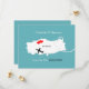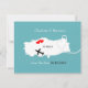 A fun save the date for couples getting married in Turkey with a white silhouette map of Turkey on teal with sweet red love hearts and so easy to customise with your personal names and message