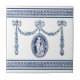 A beautiful blue and white tile, this neoclassical design by Wedgwood would make a great border above a tile wainscot or dado. It features a floral garland topped with ribbon bows and a central cameo with a woman and lyre, framed top and bottom by a stylised stripe and floral band. A copy of an antique tile from our collection.