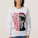 Turn festive cheer into subtle rebellion. This semi-realistic 3D Wednesday design features a faint smirk under a Santa hat and deep red Gothic text reading “This Holiday Story Takes a Dark Turn. My Favorite Kind.” Perfect for those who find joy in the darker side of Christmas storytelling.