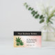 Three bright leaves on a gradient peach. Change information on front and back. Three initials on either side on back are those of the business name or you can just delete this area and leave it blank. It looks just as good.