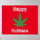 Weed Leaf Christmas Happy Holidaze. Funny red and green Christmas poster has greed weed leaf on red background with white shaky text that reads "Happy Holidaze."