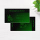Three bright leaves on a gradient green. Change information on front and back. Three initials on either side on back are those of the business name or you can just delete this area and leave it blank. It looks just as good.