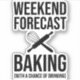 Weekend Forecast - Baking (With A Chance Of Drinking). This funny quote baking accessory is a great gift for a man or woman who loves to bake in the kitchen. Also perfect for a baker or a bakery worker. If you're a home baker, love the culinary arts, and love to prepare delicious bread, cookies, muffins, cakes or cupcakes in the oven, then this humourous design is for you.