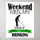 This is a poster suitable for a golfer. It has a silhouette of a golfer and states "Weekend forecast Golf with a chance of drinking. This would look great in your home, dorm room or office. Add some text to personalise it.