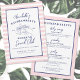 On the back, a simple itinerary is presented in a clean rectangle with a blush pink background surrounding it. The layout is easy to customise, offering space for all the essential details of the weekend.