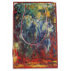 This design features artwork by the French Impressionist painter Claude Monet (1840–1926). It depicts a weeping willow tree. Monet uses broad, sweeping brushstrokes and vivid, layered colour to evoke the tree's emotional presence. The composition is dominated by cascading, vertical and swirling strokes of green, yellow, white, orange and red, which suggest the drooping branches of the willow. Interwoven within these are flashes of purple, blue, and deep reds, giving the impression of filtered light and shifting shadows. The palette is both vibrant and sombre, reflecting Monet’s late style, in which his brushwork became looser and his forms more abstract, verging on the expressive freedom of modern painting. The overall effect is immersive and emotional: rather than a straightforward landscape, the painting conveys the atmosphere of standing beneath the tree, enveloped by its flowing canopy, with a sense of both tranquillity and awe. The original art was painted by Claude Monet in 1922.