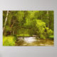 Photograph of a flowing creek or brook with lush green Weeping Willow trees.
