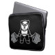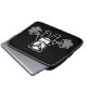 The sleeve is made of nice feeling material and seems very durable. I'm not sure how easy it'll be to clean, but the construction seems sound and the fabric is quick thick. I also like the double zipper. The printing is lovely and appears durable. The white on black contrast is nice, and the design very elegant.