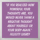 "If you realised how powerful your thoughts are, you would never think a negative thought about yourself or your body again." Felicity Luckey