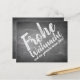 Die Grußkarte auf Schieferoptik ziert ein typografisches Design in Kreideoptik. Der Text auf der Vorderseite ist in Deutsch, Englisch und Spanisch verfügbar. Der zweite Text kann an die individuellen Bedürfnisse angepasst werden.
