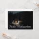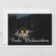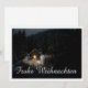Die Karte zeigt eine stimmungsvolle, winterliche Szenerie mit einer kleinen, beleuchteten Holzhütte inmitten eines verschneiten Waldes. Die warme Lichtquelle im Inneren schafft einen schönen Kontrast zur dunklen, friedlichen Umgebung. Der elegante „Merry Christmas“-Schriftzug in Weiß verleiht dem Motiv eine festliche Note. 🎄✨